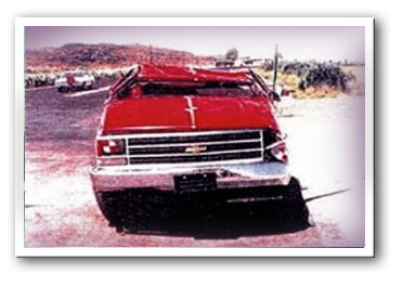 The next film clip involves an induced rollover of a 1988 Chevy pickup truck that met government standards at that time. During the first revolution, the Chevy truck’s windshield blows outward and the roof buckles. By the second revolution, the roof is completely crushed. Ironically, the truck would have failed GM’s own goals from the late 1960s, which provided that all vehicles withstand a 70 mph rollover.
